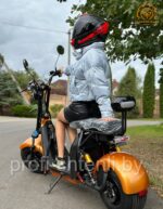 Электроскутер CityCoco SMD X9 (X11) акцентирует внимание своим неординарным и привлекательным дизайном. В основе внешнего вида — увеличенные колеса с широкими покрышками, придающие этому транспортному средству агрессивный и одновременно стильный облик. Корпус модели выполнен из прочных материалов, что делает ее не только привлекательной визуально, но и устойчивой к внешним факторам во время эксплуатации. Отличительной чертой является наличие цифрового дисплея, который совмещен с системой управления Bluetooth. Это позволяет пользователю легко отслеживать основные показатели работы скутера, а также подключаться к нему через мобильное приложение.